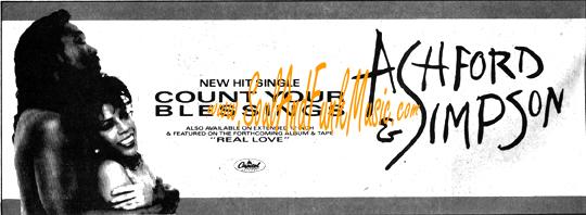 US vocal duo, songwriters, producers: Nickolas Ashford (b 4 May '43, Fairfield SC), Valerie Simpson (b 26 Aug. '48, Bronx, NYC) Husband and wife soul team met '64 at Harlem gospel meeting when she sang with the Followers, married '74. Recorded as Nick and Valerie '60s but first success as writers ('Let's Go Get Stoned' top 40 hit for Ray Charles '66). On staff at Sceptor/Wand wrote hits for Maxine Brown, Chuck Jackson; to Tamla/Motown as writers, developed into prod. work; hits incl. top ten duets by Marvin Gaye and Tammi Terrell '68 ('Ain't Nothing Like The Real Thing', 'You're All I Need To Get By'); soft soul approach used with launch of Diana Ross as solo: 'Reach Out And Touch Somebody's Hand', 'Ain't No Mountain High Enough' (also no. 19 for Gaye/Terrell). Valerie had two underrated solo LPs: Exposed! '71, Valerie Simpson '72; they did duo album Keep It Comin' '73, left Motown for WB '73 and succession of duo LPs saw fame grow: Gimme Something Real '73, I Wanna Be Selfish '74, Come As You Are '76, Send It '77, Is It Still Good To Ya '78, Stay Free '79, A Musical Affair '80, two-disc Performance '81; then on Capitol: Street Opera '82, High Rise '83 (title track top ten US black chart), Solid '84 (title track world-wide hit), expanded Solid Plus Seven and Real Love '87, Lone Or Physical '89. Still worked as prod/writers, i.e. Chaka Khan hit 'I'm Every Woman' '78, Ross's The Boss '79, Gladys Knight's About Love '80.