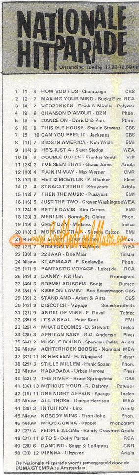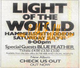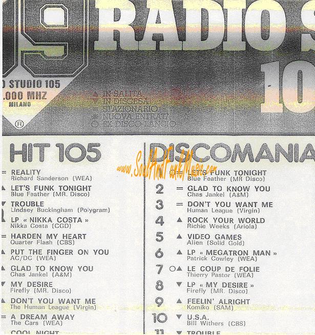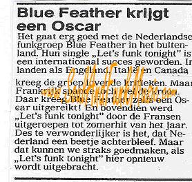 English Hit List An English review France Hit List Italian Hit List Dutch Press-Vuting about winning France Oscar Dutch Press-Vuting about winning France Oscar Announcement For a live Gig with Light Of The World Dutch Hit List Bleu Feather success story in Dutch Dutch Review Let's Funk Tonight Dutch Review Let it out Attalos Record Store Add June 1985 (see misprint Blue Father) Dutch Disco Dance Review June 1985 Dutch Ad CNR 1985