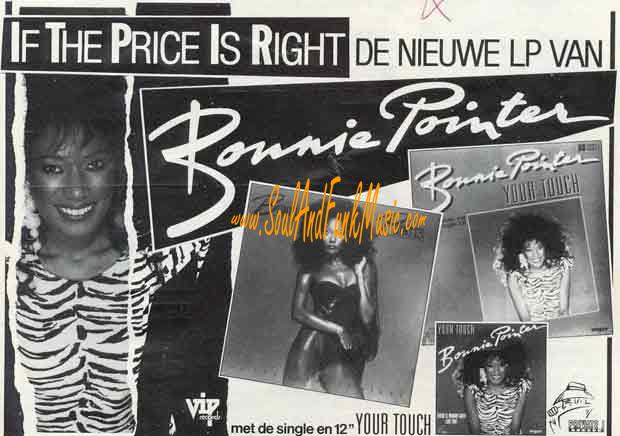 [Back] Bonnie Pointer▶ Bio Bonnie Pointer is a member of: Pointer Sisters Add/Complete Bio Appearances Articles and Documents Dutch Ad about the Album 'The Price is Right'