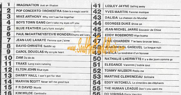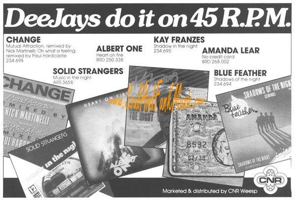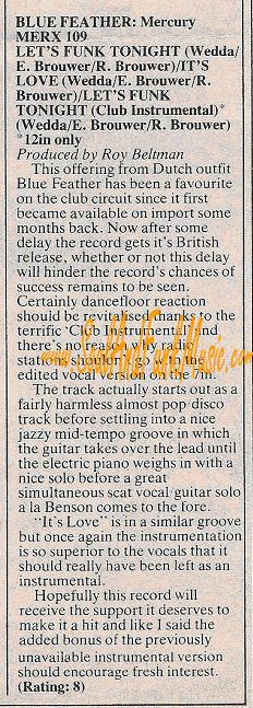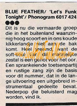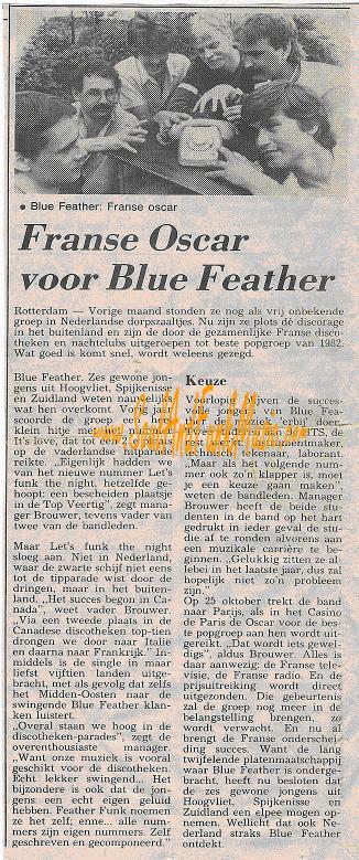English Hit List An English review France Hit List Italian Hit List Dutch Press-Vuting about winning France Oscar Dutch Press-Vuting about winning France Oscar Announcement For a live Gig with Light Of The World Dutch Hit List Bleu Feather success story in Dutch Dutch Review Let's Funk Tonight Dutch Review Let it out Attalos Record Store Add June 1985 (see misprint Blue Father) Dutch Disco Dance Review June 1985 Dutch Ad CNR 1985