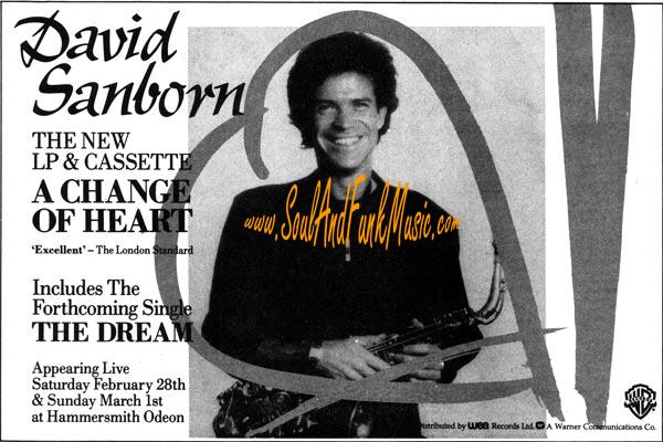 [Back] David Sanborn▶ Bio Add/Complete Bio Appearances George Benson - In Your Eyes (1983) (Sax Alto/Saxophone) Bfd - Bfd (1995) (Sax/alto) Hiram Bullock - From All Sides (1986) (Sax/Alto) Randy Crawford - Windsong (1982) (Saxophone) Maynard Ferguson - Hollywood (1982) (saxophone, alto saxophone) Roberta Flack - Oasis (1989) (Sax/alto) Aretha Franklin - Aretha 80 (1980) (Sax/Alto) Bob James - Double Vision With David Sanborn (1986) (saxophone) Al Jarreau - Heart's Horizon (1988) (Sax/Alto) Steve Khan - Arrows (1979) (alto sax) Earl Klugh - Wishful Thinking (1984) (Saxophone) John Lee & Gerry Brown - Still Can't Say Enough (1976) (Sax Alto/Saxophone) The Limit - The Limit (1985) (Sax/Solos) Wilbert Longmire - Sunny Side Up (1978) (Saxophone) Idris Muhammad - House Of The Rising Sun (1976) (Sax/Alto) Players Association - Born To Dance (1977) (Sax alto/saxophone) The Temptations - To Be Continued (1986) (Sax/alto) Tasha Thomas - Midnight Rendezvous (1979) (Saxophone) Articles and Documents Ad David Sanborn